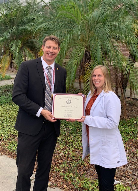 Ashley Maurer, an Air Force veteran and chiropractic student at the NUHS Florida-site, was recently awarded a $3,000 scholarship from National University during The Patriot Ball, a fundraising event, November 6 in Ohio.
