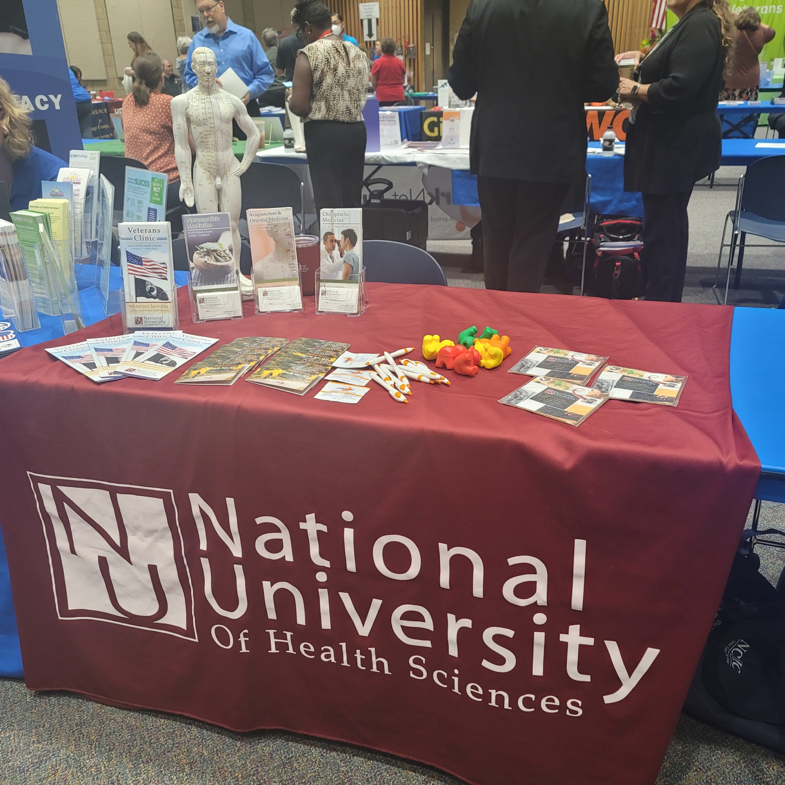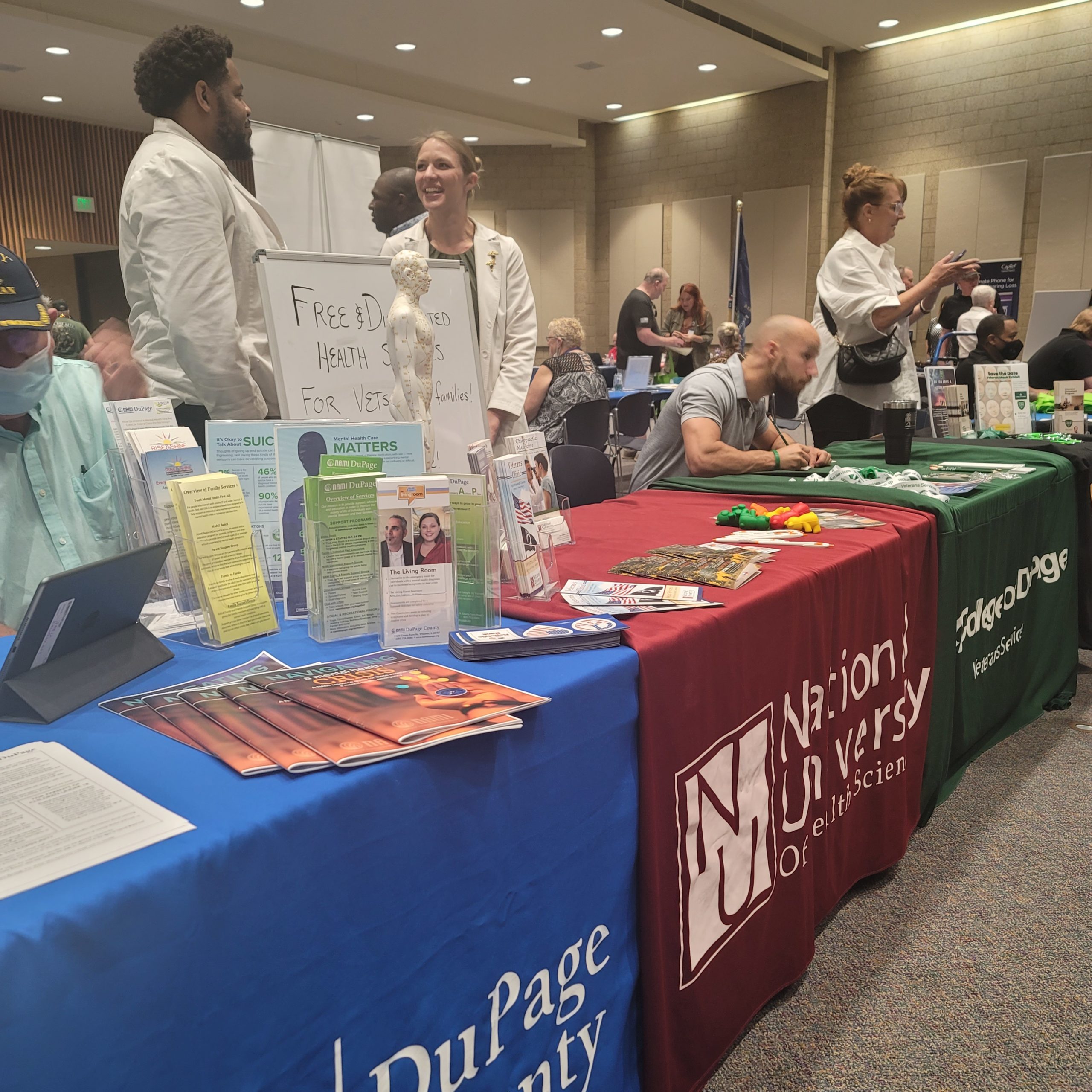 National University of Health Sciences recently took part in the Lisle-DuPage County Veteran’s Resource Fair in Wheaton to raise awareness about the NUHS Veterans Clinic and the free services provided to veterans and their families.