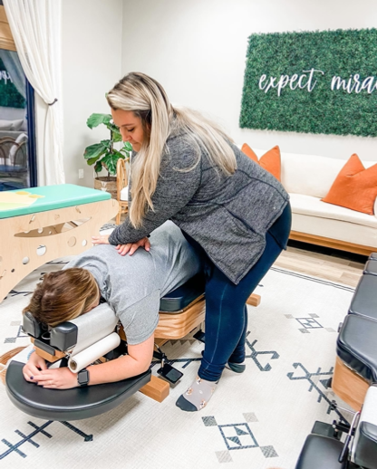 Diana Husk, DC, adjusts a patient at her practice, Cumming Family Chiropractic in Cumming, Georgia, which specializes in pediatric medicine along with pregnancy and post-partum care.